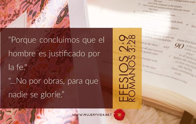 Solamente somos salvos por la fe puesta en Jesucristo quien derramó su sangre por nosotros. Nuestras obras no nos salvan.